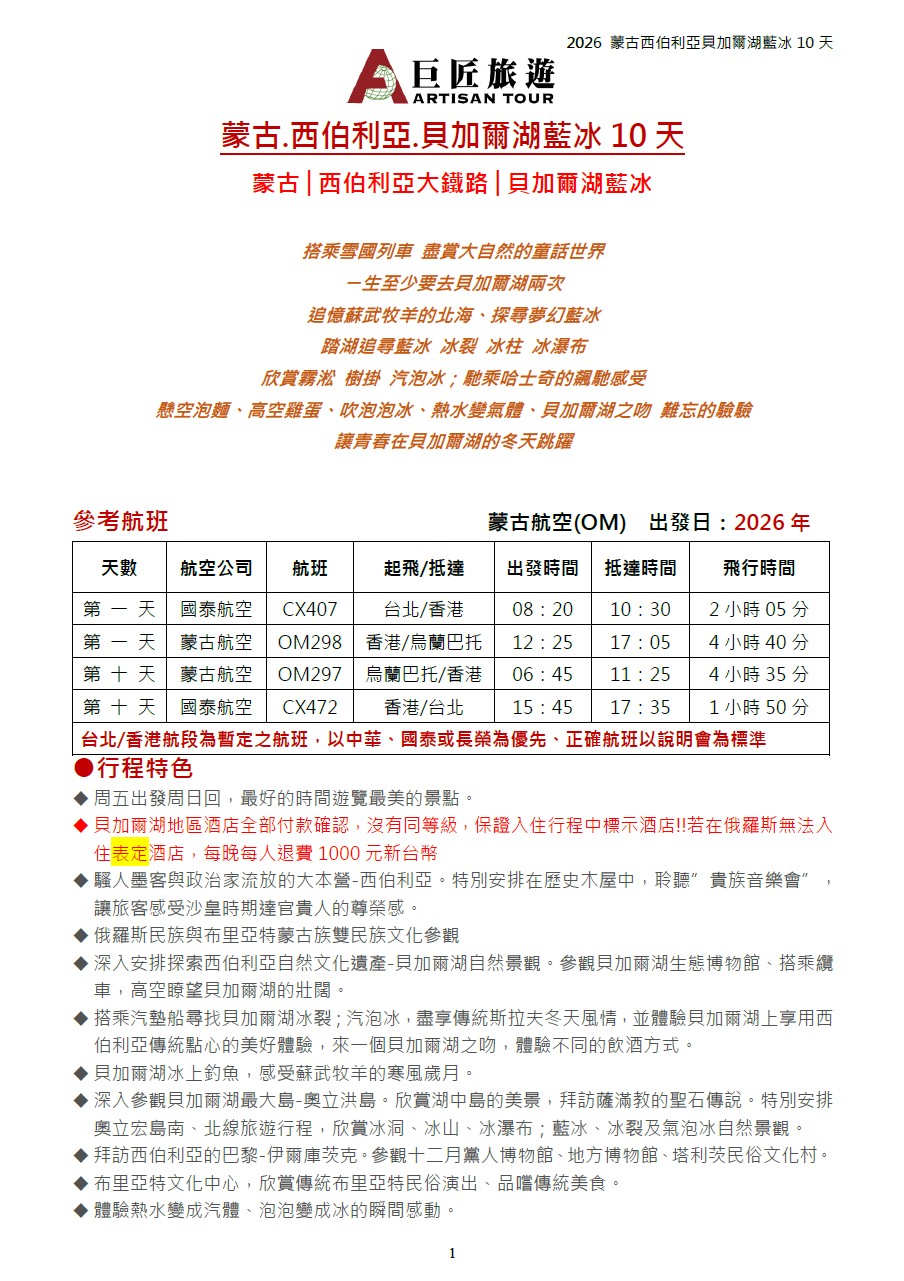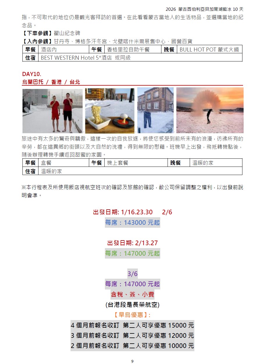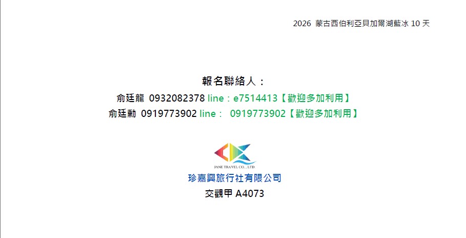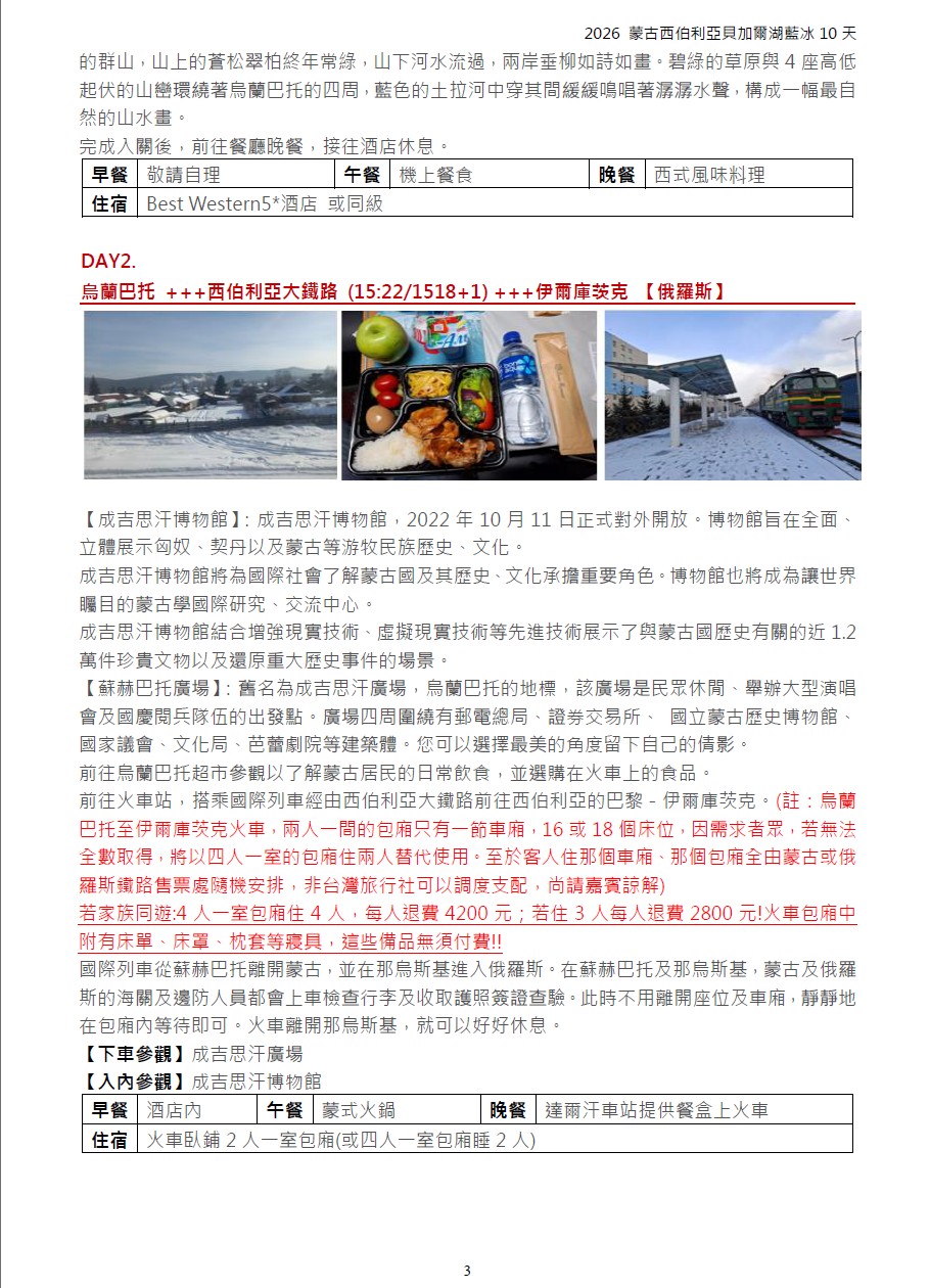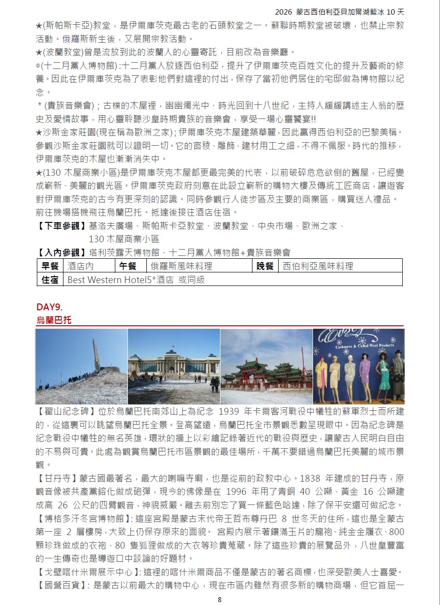 2026年01-03月:蒙古-冬季貝加爾湖10日(北出)